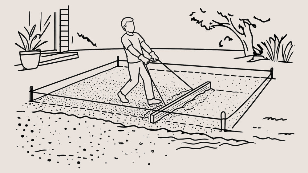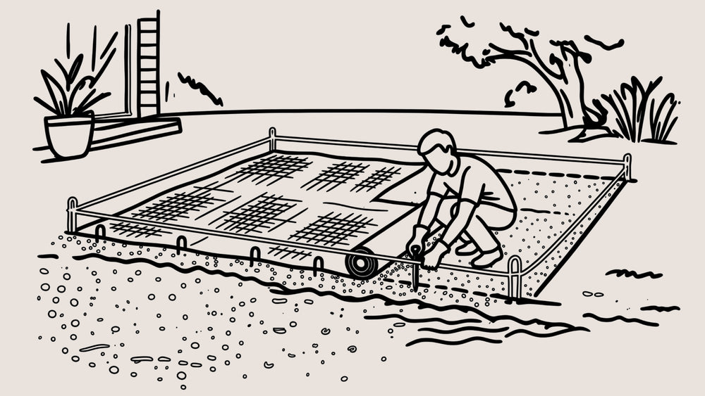 Verwijder tot slot de bovenste laag grond of gras en plaats worteldoek. Dit voorkomt onkruidgroei onder je vlonder.