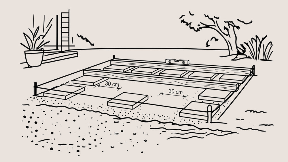 Controleer vervolgens het afschot van de ondergrond. Voor een goede waterafvoer is een lichte helling belangrijk. Werk je met holle vlonderplanken? Houd dan ongeveer 2% afschot aan, zodat er geen water in de