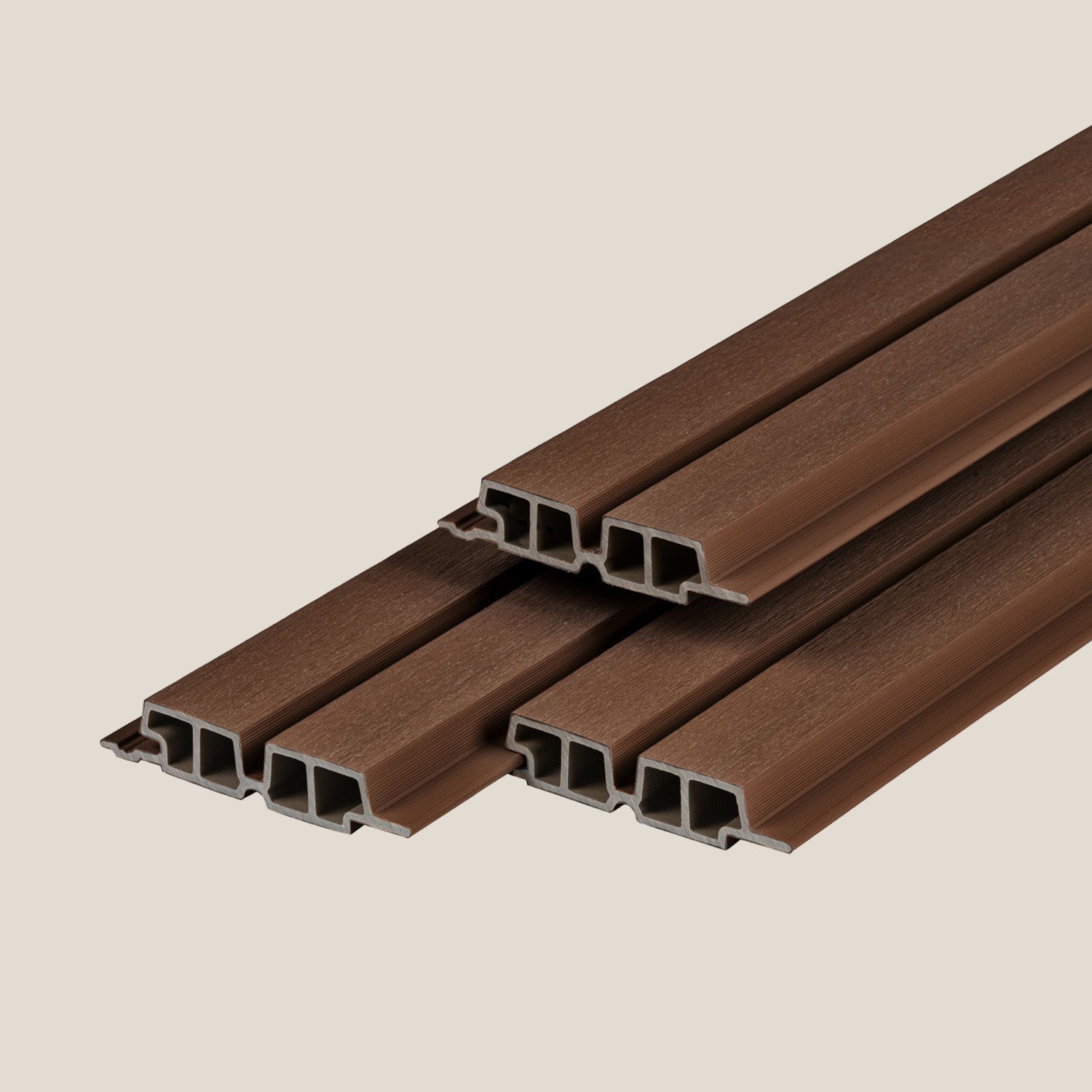 Met de composiet gevelbekleding van Terruva geef je elke wand een eigentijdse en sfeervolle uitstraling die jarenlang mooi blijft. Onze wandprofielen combineren de natuurlijke look van hout met de technische voordelen van modern composiet.