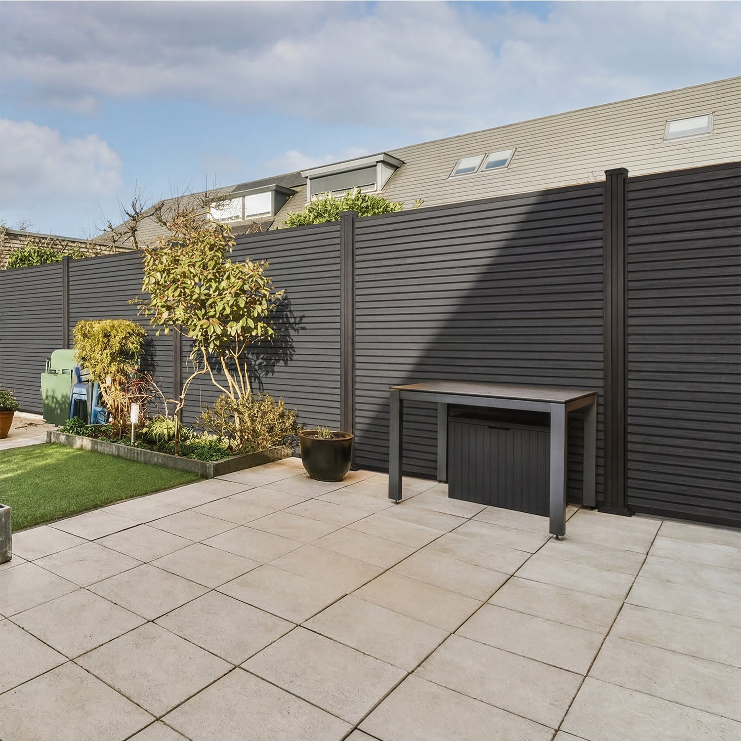 Ja, composiet houdt warmte langer vast dan natuurlijk hout. Vooral bij donkere kleuren (zoals antraciet of zwart) kan de schutting in de volle zon behoorlijk heet worden. Dit is iets om rekening mee te houden als er direct naast de schutting gevoelige planten staan of als kinderen ertegenaan spelen.